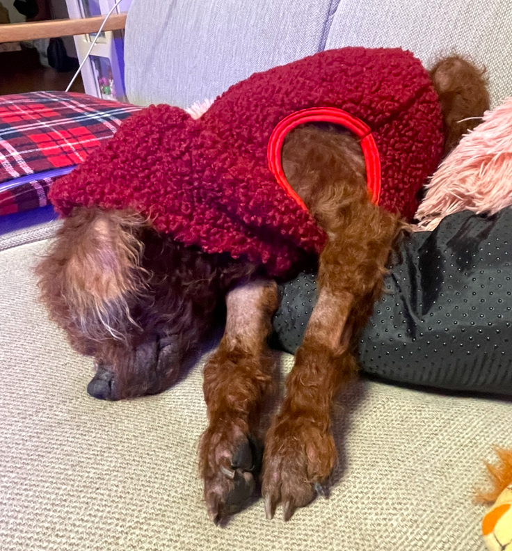 血管が硬くなってきているところがあるようで、針入れが大変なようです。入るまで何回もやり直しをするようで、本当に可哀想です。