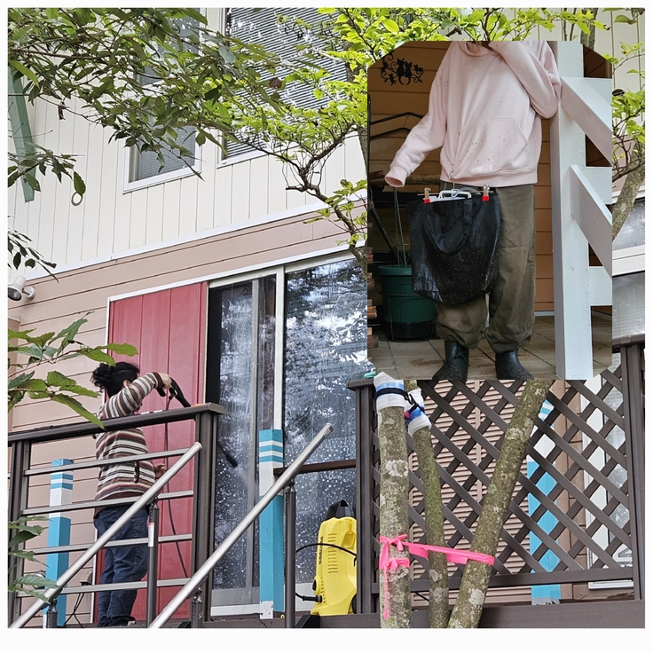 高圧洗浄機で…崩れた泥、苔、カビ…