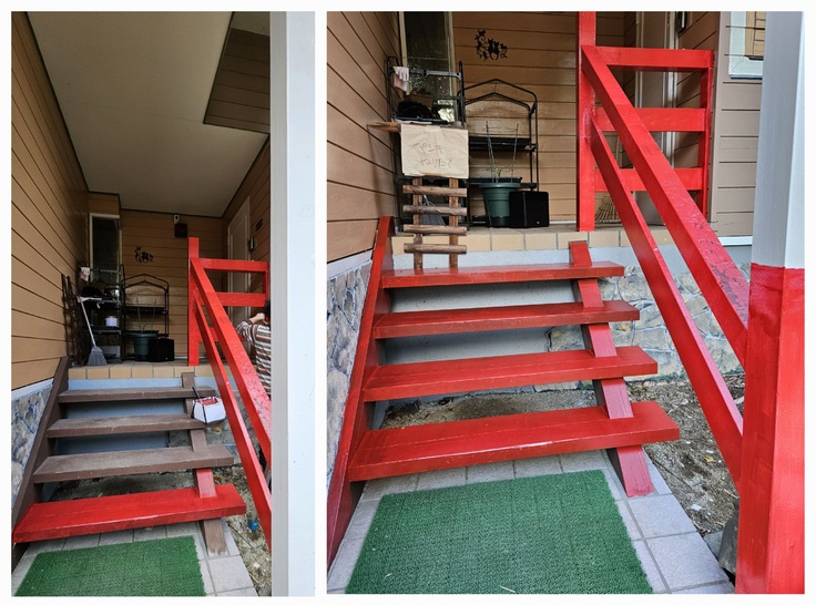 昨日、外の階段、手すりにペンキ塗りしました❗