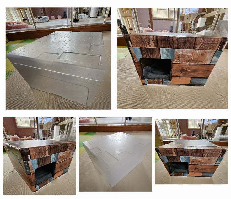 ダクトから猫たちの匂いがするせいなのか?暖かい風か出てくるせいなのか?以前駐車場で見かけた🐱なのか?鳴き声が聞こえてくるようになりました。🐱部屋にあるウッドデッキには屋根があり雨や雪が当たらないので そこにお家を置くことで少しでも寒さがしのげればと厚めの発泡スチロールの箱と段ボール、毛布で…