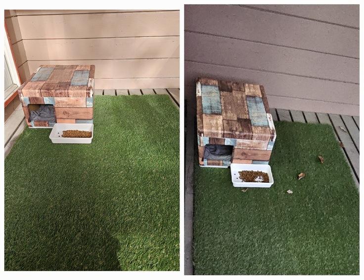 今朝は来た様子がなかったウッドデッキの🐱ハウス…夕方雨戸を閉める為、確認❗あれっ、ご飯が減ってました❗お家の中には居なかったけれど…ご飯に気づいてくれたようです。嬉しくなり息子へ報告…❗
