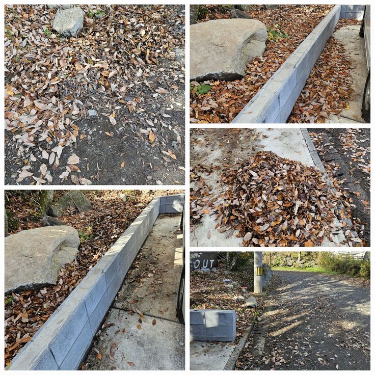 昨日雨で中止した外回り…落ち葉🍂広い…1日2日で山のような落ち葉🍂に悪戦苦闘❗杖を持つとホウキが上手く使え無い…。2本のホウキで体を支えながら、とにかく落ち葉の量が…家の前から駐車場へ引きずりながら集めて駐車場脇の窪みへ…腕の力もないため少しづつ運びいれました‼️