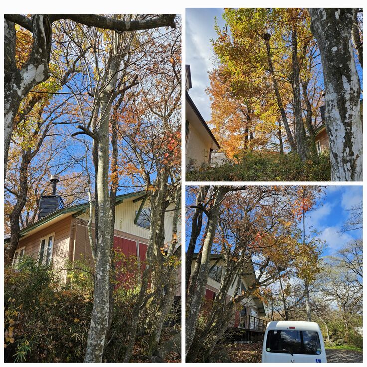 夏に生い茂っていた葉っぱも大分落ちてはきたものの まだまだしばらく続きそうです…。