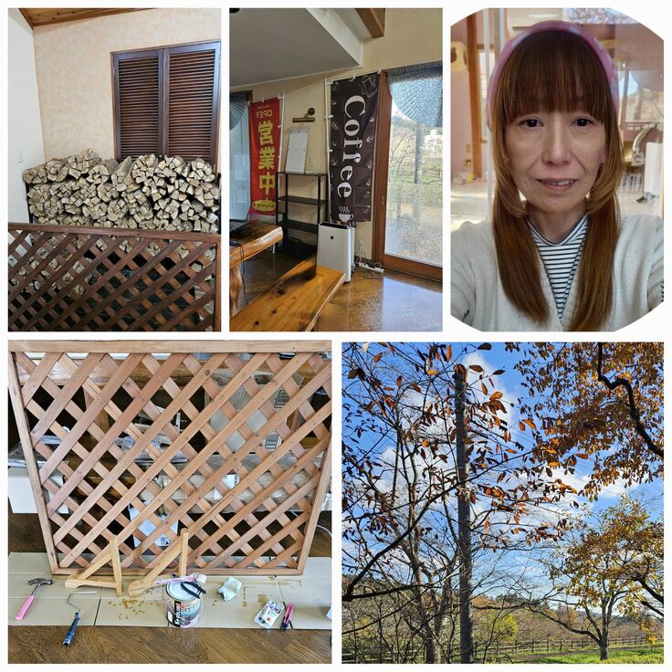 ストーブに必要な薪も揃いました。(お世話になっている住宅メンテナンスさんからの紹介で配達してもらえる事に)キッズスペースの仕切りにも保護材を塗りました❗乾いたら取り付けます❗