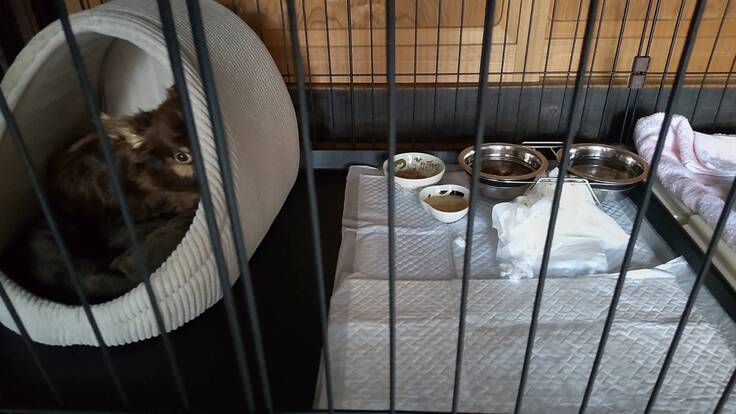 一声も泣かず、ペットシーツをぼろぼろにしたり、ゲージをかんだりして我慢していました。
