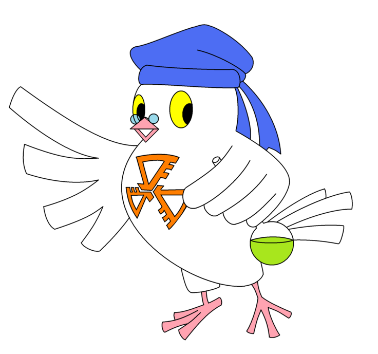 理数科の卒業生(2010)がデザインした高知小津高校のシンボルキャラクターです。高知小津高校のシンボルである「若鳩」が、県内唯一の理数科を表現する「フラスコ」を持っています。前身の海南学校に由来する「水平帽」をかぶり、胸には校章が描かれています。
