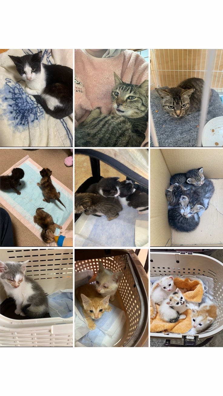 現在までの保護した猫ちゃんたちの合計を写真を元に数えてみたら成猫と仔猫合わせて42匹です。あとカメとアライグマでした。