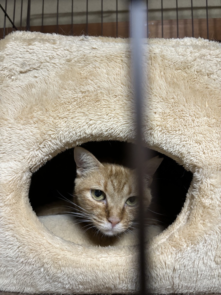 手のないチャトラは元気な子達についていけないので3段ケージでくらしています。