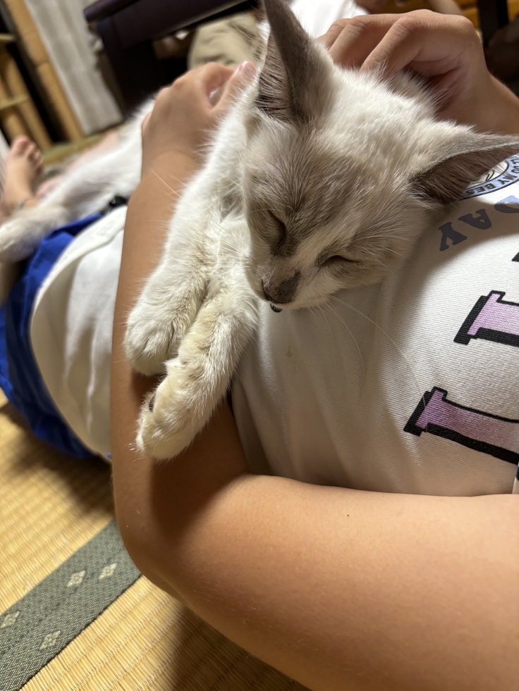幸せそうに寝てます❤️迷い猫なのか捨てられたのか?こんなに甘えん坊をほっておいたのでしょう?保健所にも届け出の連絡はないとの事です😢でも幸せにするからね✨
