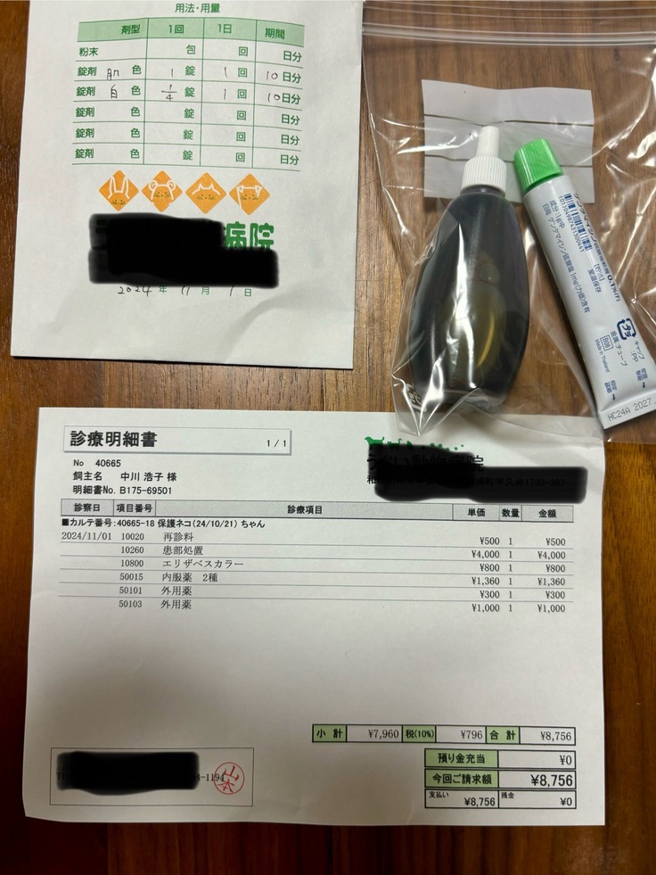 イソジンで洗って軟膏を家で毎日塗ることになりました。飲み薬も処方してくださいました🐈