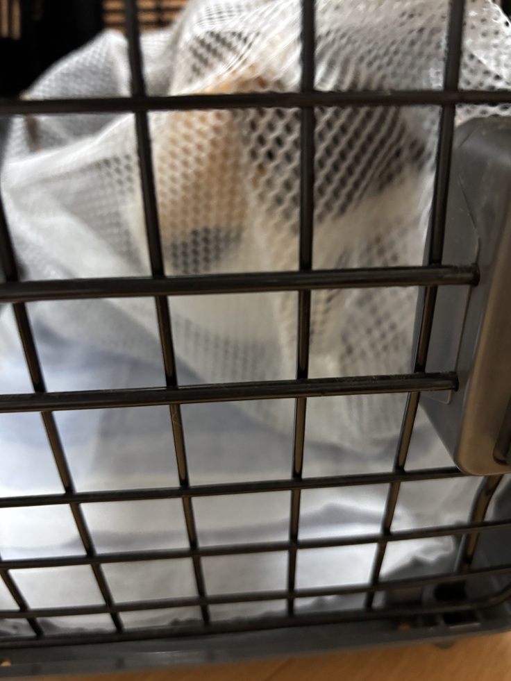 帰宅後大好きなパウチにがっつくかぁーちゃん🩷
