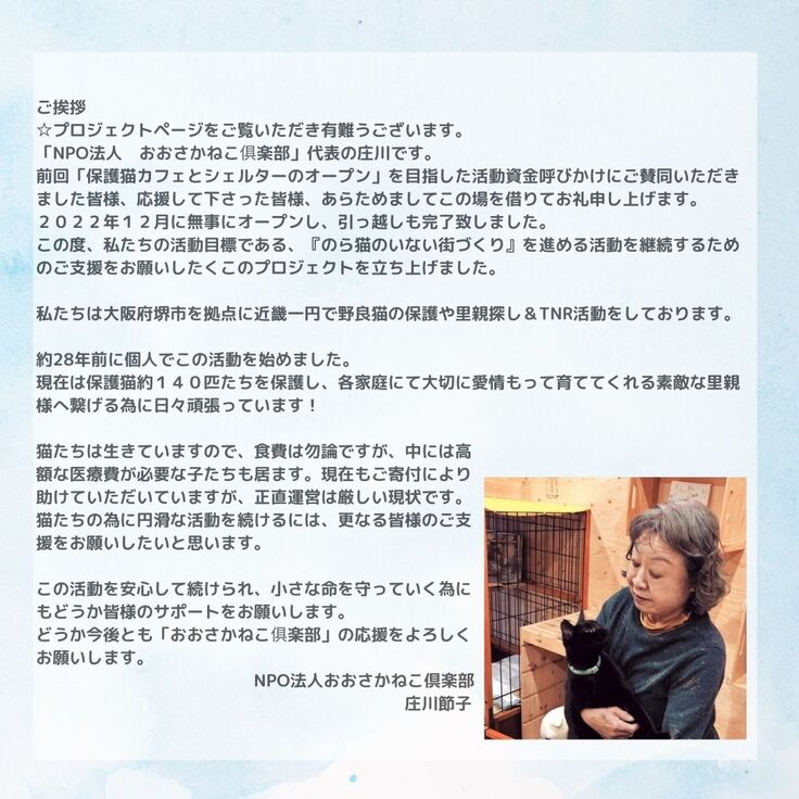 - 庄川節子(NPO法人おおさかねこ俱楽部)