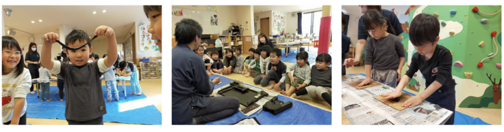 保育園や幼稚園から高校まで、園児や生徒に向けて実際に触れて感じてもらえる内容で授業をさせていただいております。