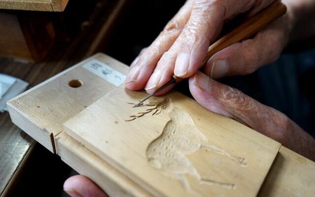 奈良在住の佐藤さん。毎日黙々と、師匠である中村さんのもとで修業され、今では中村さんからも認められるほどの見事な墨型彫刻を彫られています。