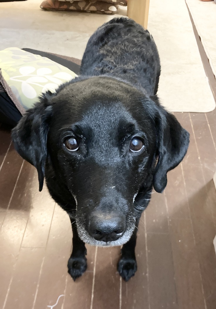 ※写真は相棒の聴導犬アーミです。「白い犬」じゃなくて「黒い犬」です(笑)