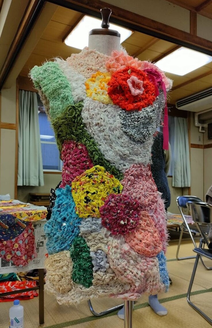 私達「手芸サロン兎姫(とき)」は、「老いも若きも楽しく!」をモットーに、高知県高知市でアップサイクルファッションの普及活動を行いながら、子どもから外出機会の少ない高齢者まで、様々な世代の交流の場づくりを行っています。 活動アイテムとなっているのは、「アップサイクル」手法の一つ、「さき編み」。タンスや押し入れの中に眠っている古着や古布等を裂いて糸にし、編み物として新たなファッションアイテムを生み出しています。