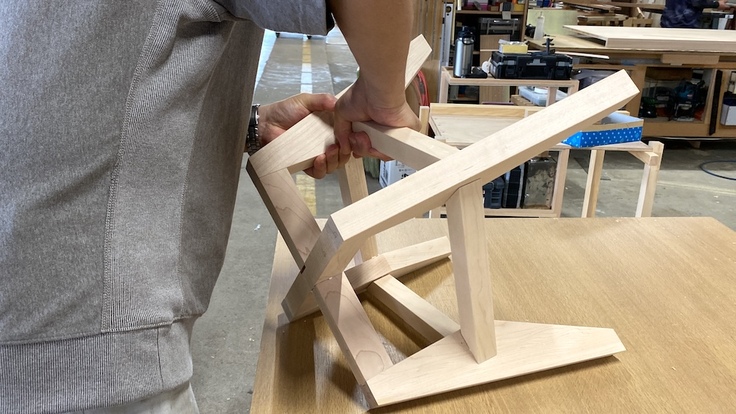釘などを使わず、木を組み合わせていく手法で作られており、より強固な構造で長く使うことができるそうです。アルウィンの歴史を後世に残していくために、職人の方が試行錯誤を繰り返しながら一脚一脚手作りで製作いただいています。