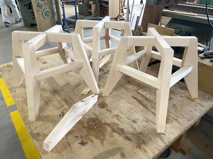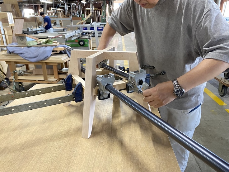 クラウドファンディング受付が終了した後から製作を開始していただき、脚の部分の組み立て工程が幾つか終わっていました。ちょうど脚の部分を組み立てている作業に立ち会うことができました。