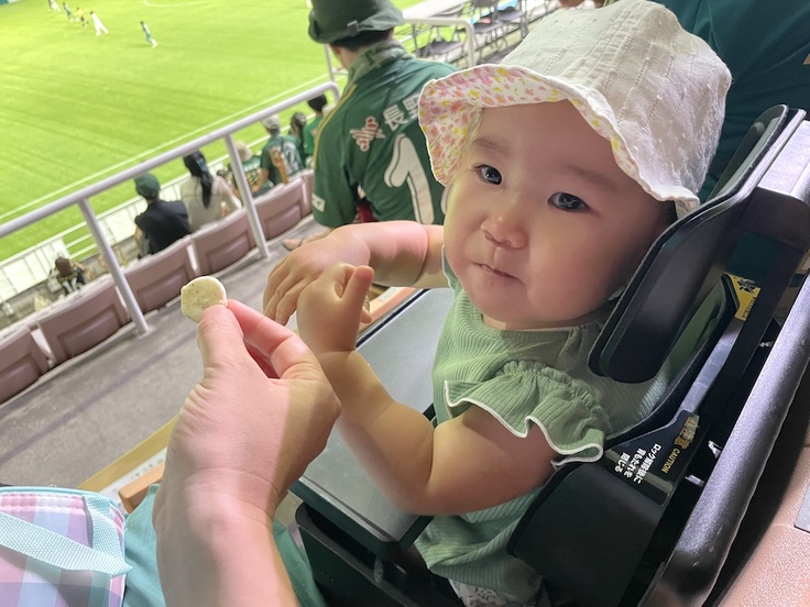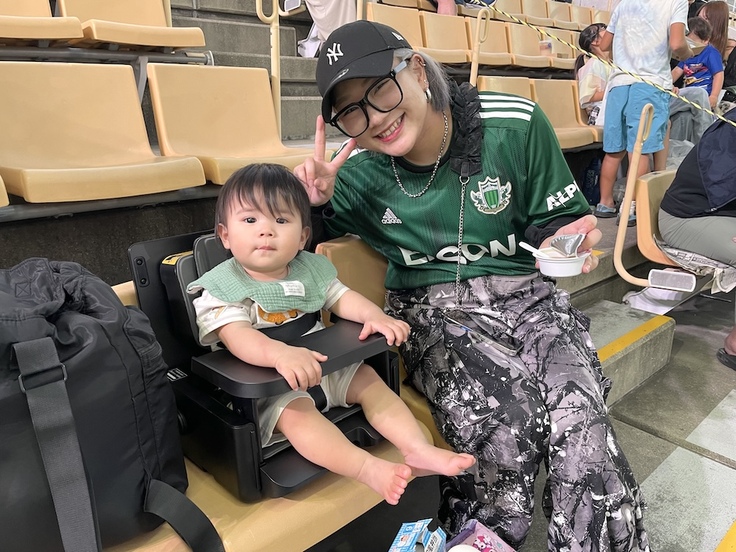 今年の夏は非常に気温が高かったので、膝上や抱っこ紐を使っているとお子さんだけでなくパパ・ママも蒸れてしまったり、熱中症の原因にもなってしまいますが、ポータブルチェアを使った観戦は、夏の試合観戦にも便利というお声もいただきました。
