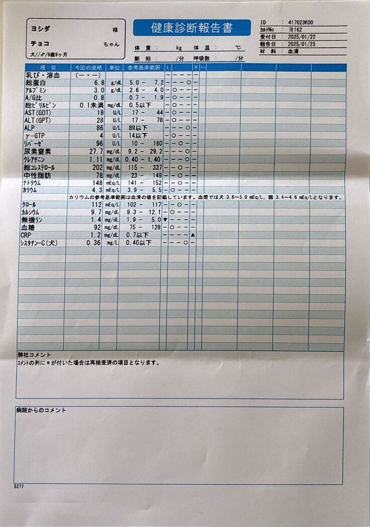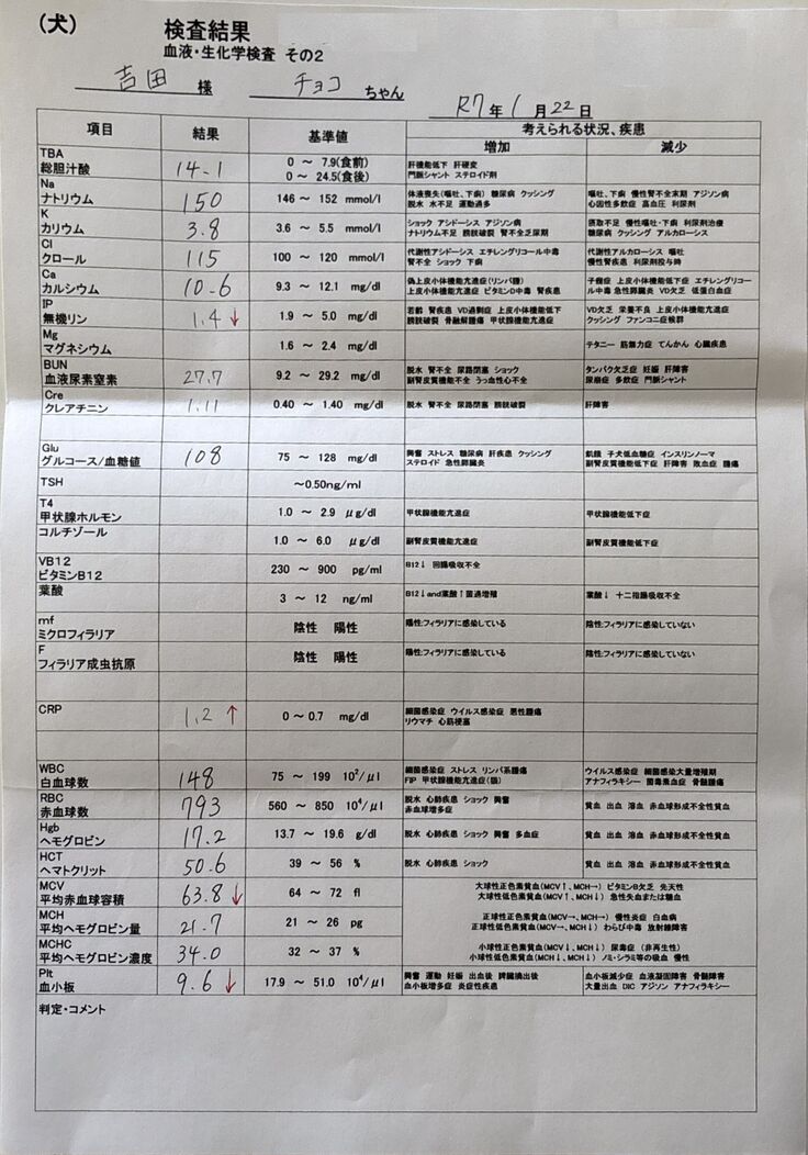各種検査の結果問題ない数値と心臓も良好とのこと。