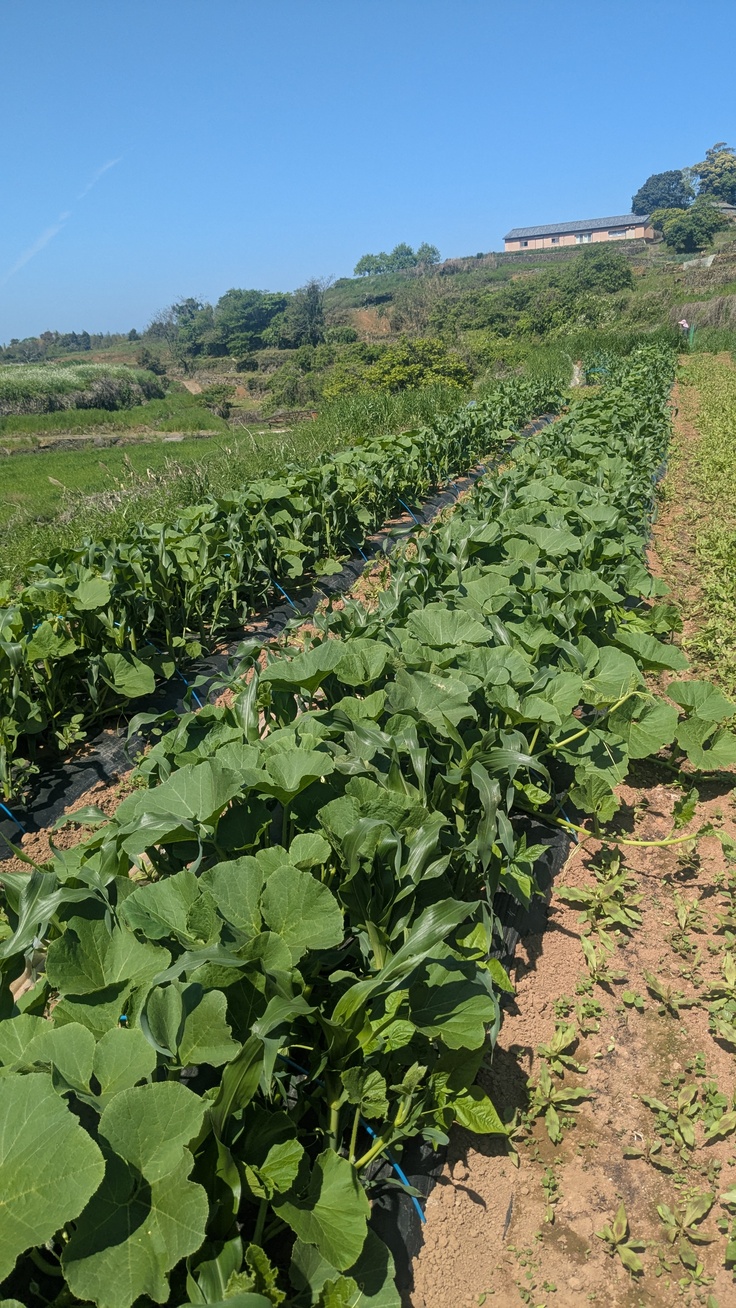 暑さ寒さで一時はどうなることかと不安な毎日でしたが、なんとかひとまず大きくはなってきました。畑一面に広がるかぼちゃ、とうもろこし、いんげんまめがすべて収穫できるよう、日々作業に努めて参ります。