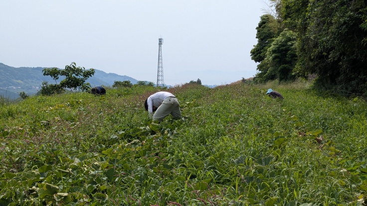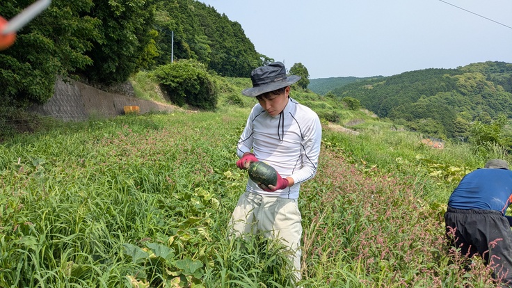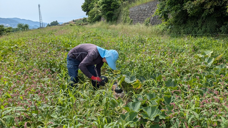 収穫は4人で行いました。雑草の中に隠れているかぼちゃを一つ一つ探すのは大変で、かがんで歩きながらの作業は体力勝負でした。