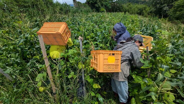 ご支援のリターンとしてスリーシスターズ(かぼちゃ・とうもろこし・さやいんげん)を選んでくださった方には、今回収穫したとうもろこしとさやいんげんも一緒にお届けします。