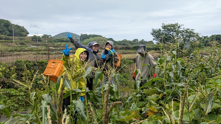 とうもろこしは一部、虫に食べられてしまったものや先端に実が詰まっていないものもあったり、引き続き農業の難しさを教えて頂きました。その中でも、育ったものをその場で試食してみると、シャキッとした歯ごたえと、自然な甘さが感じられ、素材本来の味わいを楽しめました。