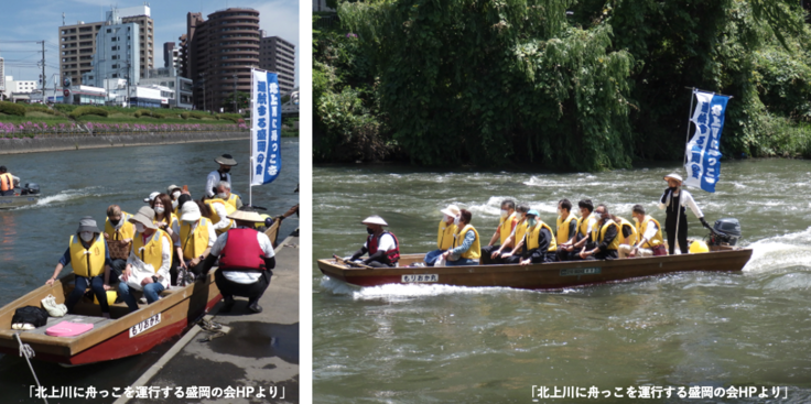 江戸時代には主要な輸送手段として、北上川での舟運が盛んに行われていました。南部藩の玄関口に位置していた現在の鉈屋町界隈は、舟運の舟着場としても栄えた場所でした。「盛岡まち並み塾」を含む、盛岡の9団体による「北上川に舟っこを運行する盛岡の会は」、もりおか丸の建造から2021年の開港式に始まり、北上川での舟運に取組み、2024年は7回の運航を実施いたしました。