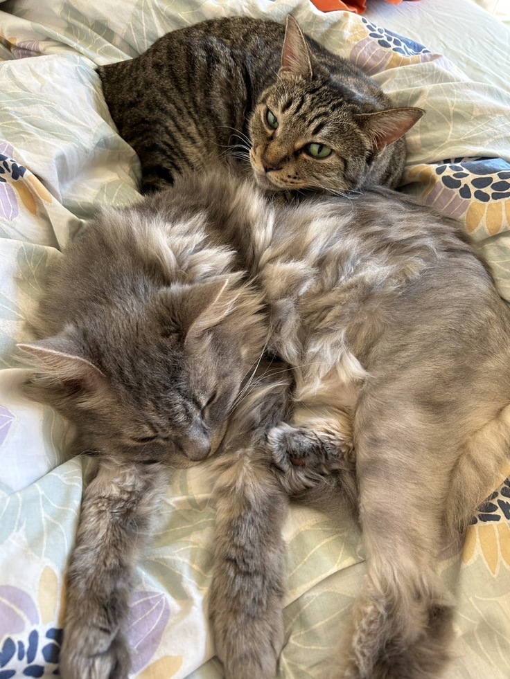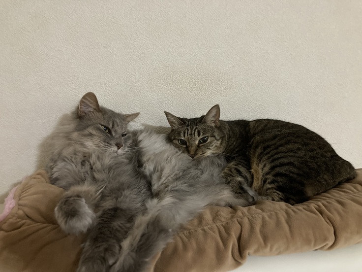しょんぼりしてるれんに、むぎがそっと寄り添っているような感じがします☺️