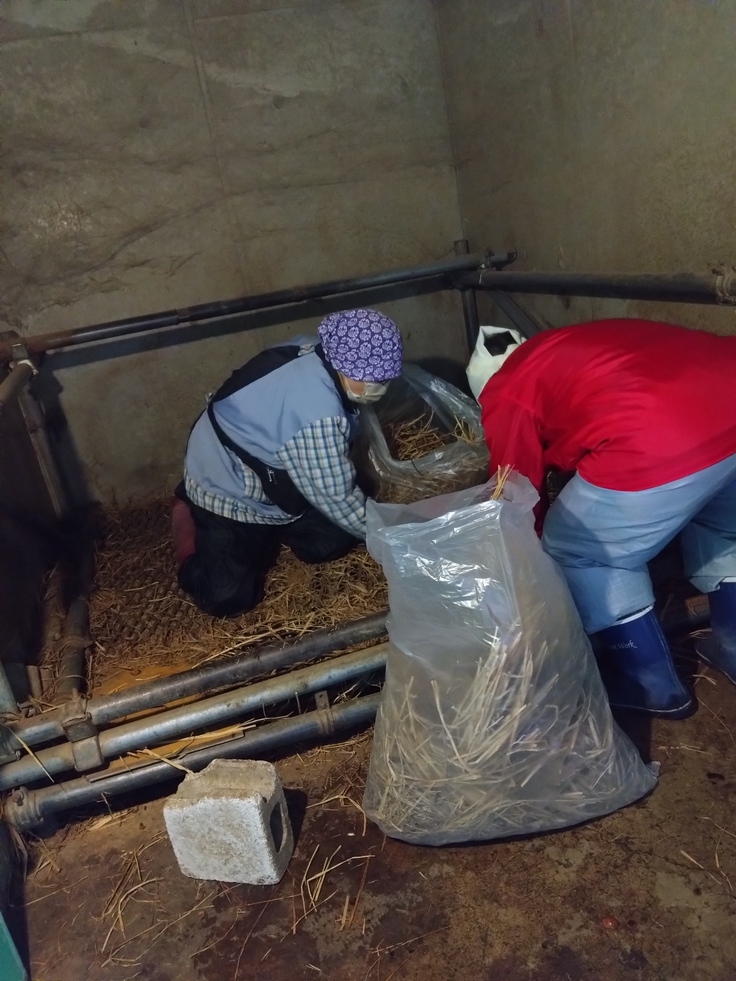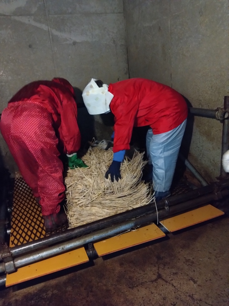 設楽君もワラをお椀型にして寝床を作ります🍀