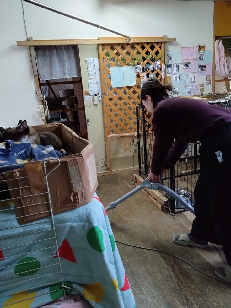 仕切りをして各部屋に分けていますが犬舎猫舎に分けられないため、一番広い部屋は犬猫共同にしています。