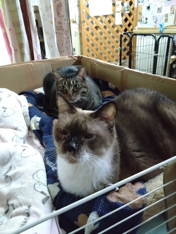 1匹(チョロ)は犬猫共同部屋に、1匹はくまんち事務所の隣の家(一緒にくまんち活動している実家に)、もう1匹は里親さんの元へ行きました。