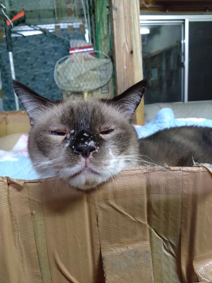 『たいよう』の顔を見ると目が小さくて猫らしからぬ顔をしていて、皆さんによくコツメカワウソに似ていると言われます😅