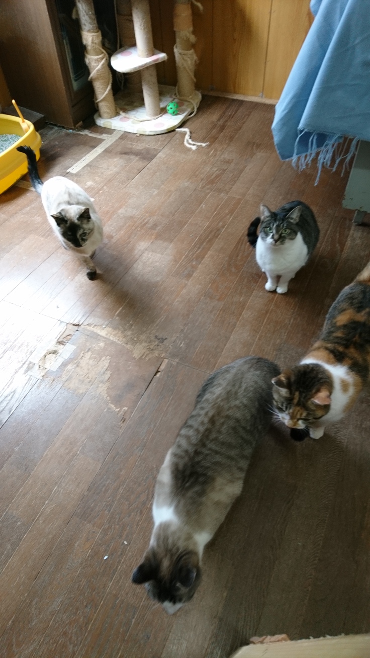 ハル君(オス)、なっちゃん(メス)、あきちゃん(メス)、ふゆちゃん(メス)の5匹家族です。