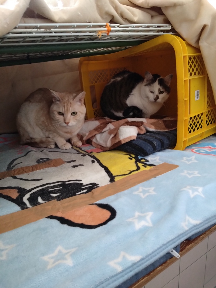 そのマックの飼い主さんが経営する会社に、野良さんが産んだ4匹の猫がいたのですが、その内の1匹が会社の近くで交通事故に遭い、仕方なくマックが使用していた小さなオリの中で飼われていました。夏の暑い日に小さなオリで飼われていて、くまんちに空き部屋があったことから、引き取り可能と判断し7年前にくまんちへやってくることに。
