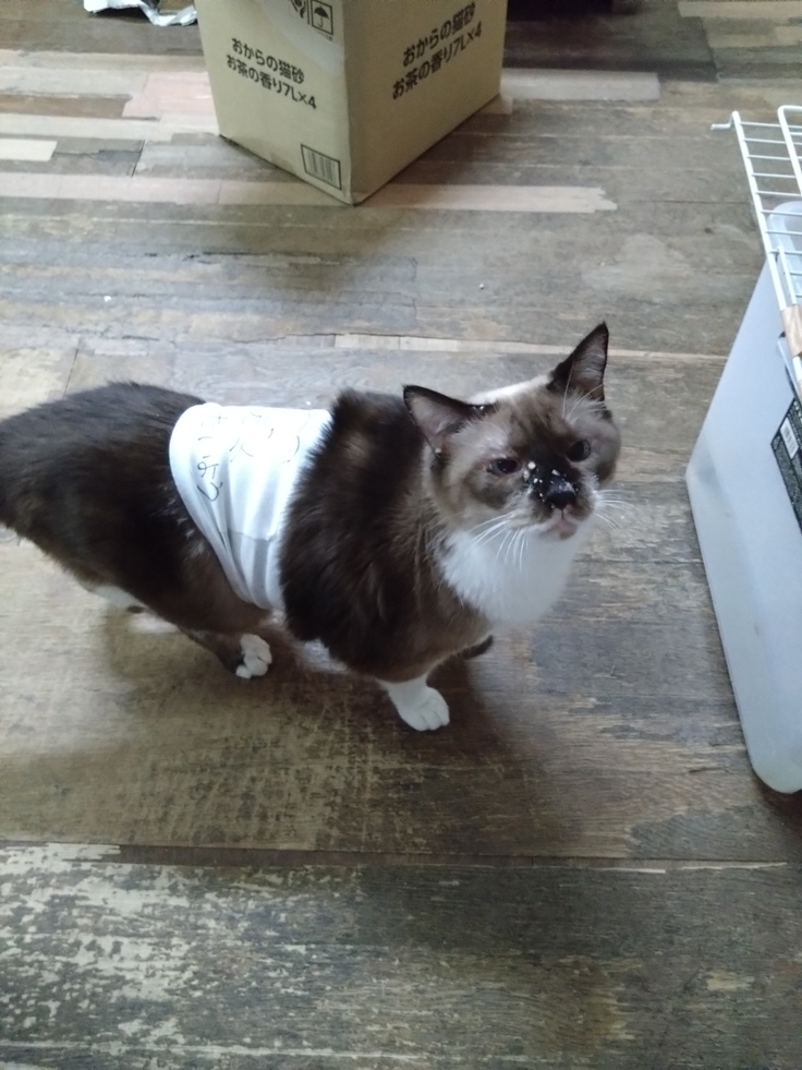 2週間前くらいから元気印だったしらこちゃんの元気がなく、痩せてきたのでおかしいと病院を受診しました。3キロだった体重が2.1キロにまで減っていました。血液検査の結果、肝臓が悪いことが判明、それから毎日投薬とクリティカルリキッドと高栄誉チュールで食事をフォローしています。
