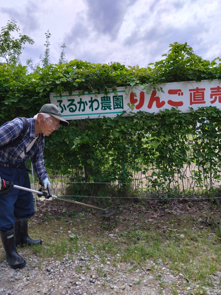 今年もリンゴ園で電気柵張りそしてクマ舎の夏支度