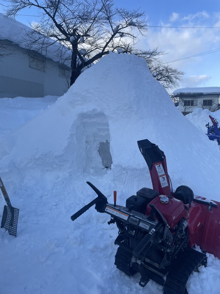 本日はいよいよ本番のかまくら作りです。皆様を迎え入れるにあたって全力でかまくら作りを行ってまいります。完成したら是非、お越しくださいませ!