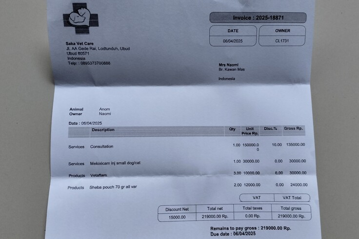 アモキクリアを投薬したと先生に話をしましたら、このまま投薬続けて大丈夫と言われ、熱を下げる注射を打って薬を処方を処方していただきました。