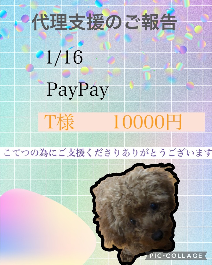 1/16 PayPayでのご支援がありましたのでご報告致します。