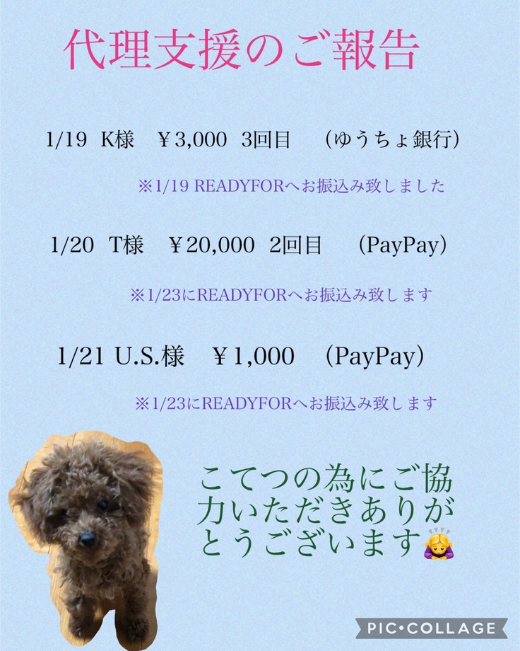 代理支援のご報告と今日のこてつの様子のご報告を致します。