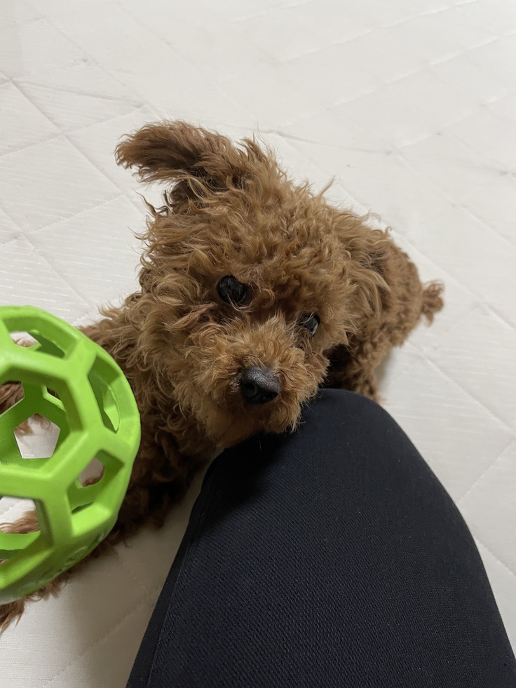 朝のこてつは大好きなご飯を沢山食べて、大好きなボールで沢山遊んで大満足しております。