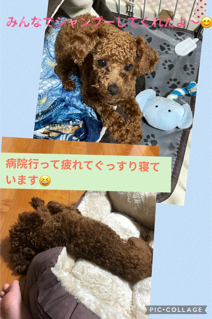 シャンプー後と病院から帰ってきた時の写真を載せます^ ^
