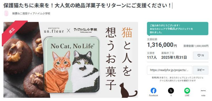 『保護猫たちに未来を!大人気の絶品洋菓子をリターンにご支援ください!』