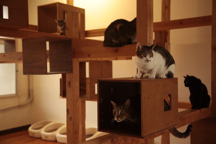 2階は猫ちゃんの教室があるフロアになります。教室は4つございますのでご自由に入室ください!