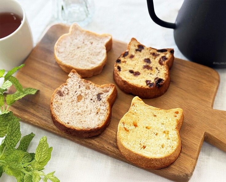 メインリターンには、朝ごはんやおやつにぴったりな、食べきりサイズの【ミニねこ食パン】をご用意しました。可愛いねこ型で、思わず写真を撮りたくなる見た目です。