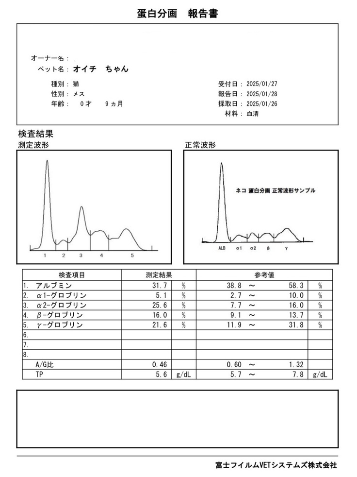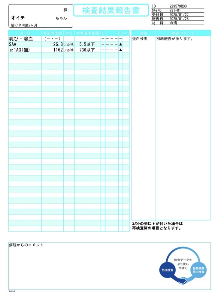 1月26日に行った血液検査の結果がでましたのでご報告致します。