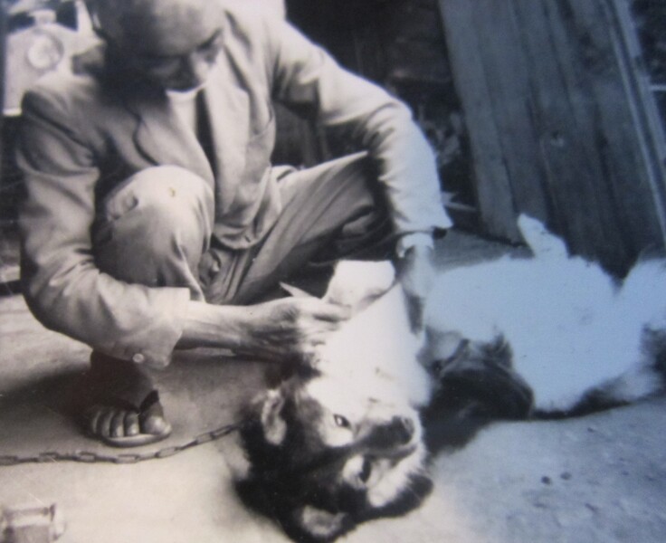 明治生まれの先代と保護犬初代/太郎(雑種犬)