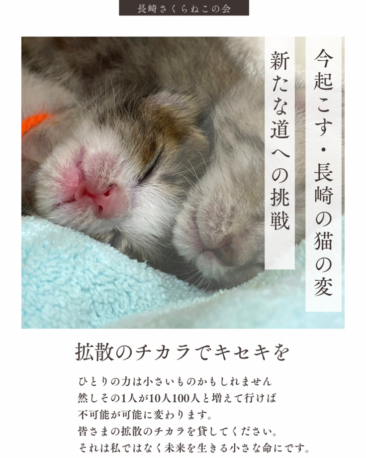長崎市猫殺処分ゼロと継続へ!シェルター拡充で乳飲み子救出と保護を!